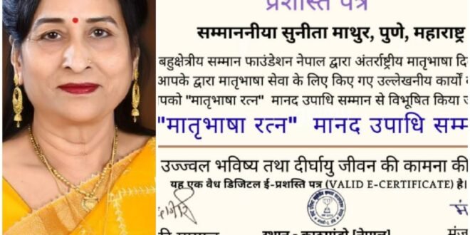 *अंतर्राष्ट्रीय महिला दिवस* 8 मार्च के पावन अवसर पर *“शब्द प्रतिभा बहुक्षेत्रीय सम्मान फाउन्डेशन नेपाल”* द्वारा आपको *“स्त्री शक्ति सम्मान”* से अलंकृत किया जाना हमारे लिए अत्यंत गर्व और प्रसन्नता का विषय है।