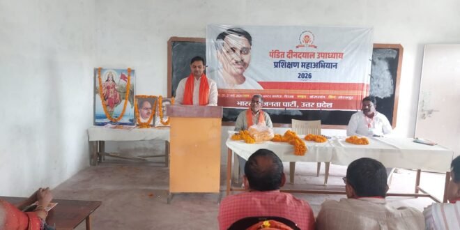 कौड़ीराम : : भारतीय जनता पार्टी मंडल बांसगांव का दीन दयाल उपाध्याय प्रशिक्षण अभियान 2026 जी डी इंटर कालेज डिघवा कौड़ीराम के परिसर में दिनांक 20 व 21 मार्च को आयोजित किया गया। प्रशिक्षण सत्र के समापन सत्र को बांसगांव के विधायक डा विमलेश पासवान ने संबोधित किया।प्रशिक्षण के दौरान पूर्व जिलाध्यक्ष मार्कण्डेय राय,जिला उपाध्यक्ष,मनोज शुक्ला सोनालिका,संजय सिंह,हरिकेष राम त्रिपाठी ,सफल सिंह पालीवाल,सरोज रंजन शुक्ल,के एम मझवार,का मार्गदर्शन प्राप्त हुआ। प्रशिक्षण कार्यक्रम में मंडल अध्यक्ष अश्विनी राय, पूर्व मंडल अध्यक्ष राजेंद्र राय,रमेश कुमार, राजेश राय, प्रमोद त्रिपाठी, राजमंगल यादव, अवनीश राय, अविनाश सिंह अन्नू,मनोज सिंह, जितेन्द्र सिंह, गुड्डू शाही,अजय सिंह घनश्याम गुप्ता सहित समस्त पदाधिकारी उपस्थित रहे।