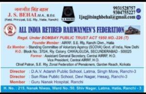 टाटा नगर: : बीती 22 मार्च को रिटायर्ड रेलवे एम्प्लोयी एसोसिएशन टाटा का 25 वां वार्षिक महा अधिवेशन बड़े हर्षोल्लास वातावरण में सम्पन्न हुआ ।