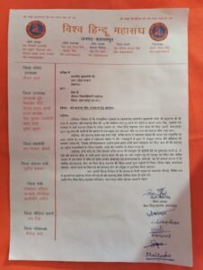 विश्व हिंदू महासंघ तत्वावधान में विश्व हिंदू महासंघ प्रदेश अध्यक्ष भिखारी प्रजापति के निर्देश पर शहीद दिवस के अवसर पर विश्व हिंदू महासंघ बलरामपुर द्वारा फुलवरिया बाईपास चौराहे को वंदे मातरम चौराहा घोषित किए जाने के लिए मुख्यमंत्री के नाम ज्ञापन जिलाधिकारी बलरामपुर को दिया गया ।
