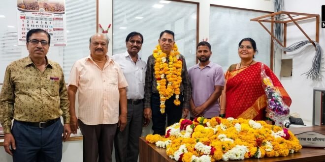 इंदौर : : मध्यप्रदेश पश्चिम क्षेत्र विद्युत वितरण कंपनी लिमिटेड इंदौर की सेवा से श्री अनिल कुमार शर्मा, (कार्यालय सहायक एक) की सेवानिवृत्ति पर आज मध्यप्रदेश विद्युत कर्मचारी संघ फेडरेशन इंदौर की ओर से मुख्य अभियंता कार्यालय में 31 मार्च को पुष्पमालाऐं पहनाकर सम्मान व अभिनंदन किया गया, उन्हें हार्दिक बधाई एवं शुभकामनाएं दी गई, उनके सदैव प्रसन्न व स्वस्थ रहने, उज्ज्वल भविष्य, दीर्घायु होने की कामना की गई। अभिनंदन करने वाले सर्वश्री एन के यादव झोनल सेक्रेट्री सहित मदन वर्मा “माणिक” (कवि एवं लेखक) प्रदेश प्रवक्ता, जे एल जोशी ट्रांसको, उम्मेदसिंह राजपूत, एन के जैन, सतीश पुंडलिक, सुश्री प्रियंका यादव, सुरेन्द्र पटेल मदनलाल भेराजी, अन्य साथीगण शामिल थे।