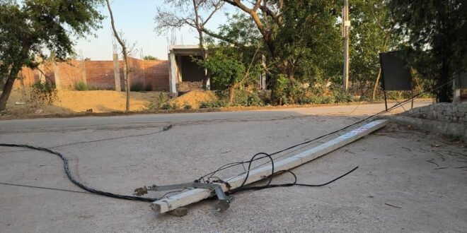 लखनऊ : : गोसाई गंज पावर हाउस के निजाम पुर गांव के बीच रास्ते में यह बिजली का पोल कई दिनों से टूटा पडा है जिसमें करेन्ट भी आता है इसके कारण कोई भी बडी दुर्घटना हो सकती है स्थानीय बिजली कर्मचारी आंख बन्द किये है समाज सेवी नीरज यादव ने बताया की इसके सम्बन्ध मे हमने लाईन मैंन को भी बताया लेकिन लाईमैन ने इसको ठीक नहीं किया और बताया की इसको ठीक करने में दस हजार का खर्चा लगेगा समाज सेवी नीरज यादव ने इसकी शिक़ायत बिभाग के उच्चाधिकारियों के साथ साथ प्रधानमंत्री प्रोटल पर भी की है देखो इसके बाद भी बिजली बिभाग के कान मे जू रेंगती है कि किसी बडे हादसे का इन्तजार करेगी