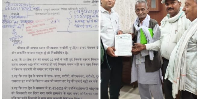 लखनऊ : : मोहन लाल गंज तहसील में धारा 24 के अर्न्तगत मेडबंदी नही करने से नाराज़ राष्ट्रीय किसान मजदूर संगठन के पदाधिकारियों ने पूर्व से लम्बित मामलो को लेकर उपजिलाधिकारी मोहनलाल गज के कार्यालय पहुंचे वहां पर उपस्थित नायाब तहसीलदार गुरु मीत सिह ने किसानों को समझाने का प्रयास किया लेकिन किसानो ने दिनांक 10/04/2026 तक समास्याओं का समाधान नहीं होने पर उपजिलाधिकारी मोहन लाल गंज कार्यालय पर अनिश्चितकालीन धरना प्रदर्शन का ज्ञापन दिया ज्ञापन में नदौली इन्टर नेशनल डेन सिरौना डेन नहरो की पटरियों की बालू नीलामी तथा गंगा गंज नगराम अर्धनिर्मित रोड और इसमे पडने वाले टूटे साइफन निर्माण की बात को शामिल करते हुए तहसील दिवस प्रभारी को दिया गया इस कार्यक्रम में मंडल महामंत्री हरिपाल सिंह लखनऊ जिला महामंत्री राम सिंह किसान नेता हरिश्चन्द्र अरविन्द कुमार मोहर्रम अली आदि नेता मौजूद रहे।