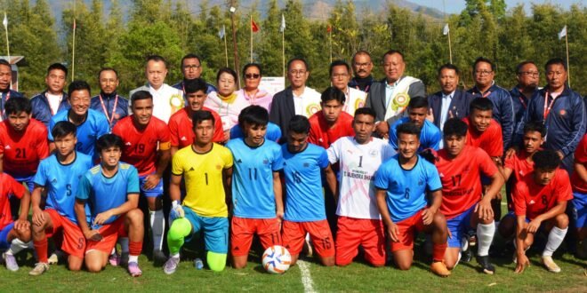 Imphal, March 22: : The 8th edition of the Thingujam (O) Nganbi Devi Memorial Football Tournament, organised by the Social Workers’ Congress (SWC), commenced today at the SWC Ground, Khongman, under the theme “Football Development and Grooming Leadership.” The tournament is sponsored by the Thingujam (O) Nganbi Devi Memorial Trust.