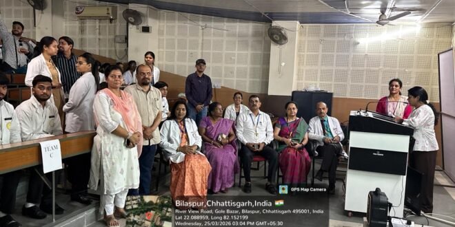 बिलासपुर, 6 अप्रैल : : विश्व स्वास्थ्य दिवस के अवसर पर सिम्स चिकित्सालय, बिलासपुर में “जेंडर फॉर हेल्थ” थीम पर एक व्यापक एवं जागरूकता से भरपूर कार्यक्रम का आयोजन किया गया। इस आयोजन का मुख्य उद्देश्य समाज में स्वास्थ्य के प्रति जागरूकता बढ़ाना एवं जेंडर समानता के महत्व को रेखांकित करना रहा। कार्यक्रम के अंतर्गत विभिन्न प्रतियोगिताएं एवं शैक्षणिक गतिविधियां आयोजित की गईं, जिसमें छात्र-छात्राओं ने उत्साहपूर्वक भाग लिया।