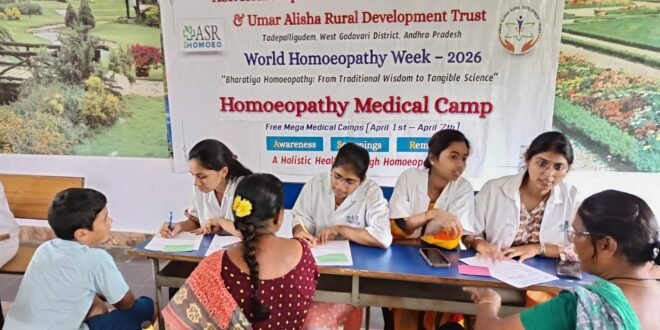 ताडेपल्लीगुडेम ,7 अप्रैल: : एएसआर होम्योपैथिक मेडिकल कॉलेज, ताडेपल्लीगुडेम में पिछले एक सप्ताह से चलने वाले विश्व होम्योपैथी सप्ताह का आज भव्य समापन हुआ। कार्यक्रम का समापन उमर अलीशा ग्रामीण विकास ट्रस्ट (यूएआरडीटी) के सहयोग से कॉलेज परिसर में आयोजित एक विशाल निःशुल्क मेगा डायग्नोस्टिक शिविर के साथ हुआ।