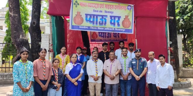 बिलासपुर, 9 अप्रैल : : भारत स्काउट्स एवं गाइड्स छत्तीसगढ़ जिला बिलासपुर के स्काउटस, गाइड्स, रोवर्स, रेंजर्स और शिक्षकों द्वारा कलेक्टर कार्यालय के पास लगातार प्याऊ घर का संचालन कर राहगीरों को जल पिलाने का पुनीत कार्य किया जा रहा है। इस पुनीत कार्य में आज भारत स्काउट्स एवं गाइड्स छत्तीसगढ़ के पूर्व मुख्य राज्य आयुक्त डॉ. सोमनाथ यादव शामिल हुए। डॉ. सोमनाथ यादव आज अपने जन्मदिन के अवसर पर राहगीरों को मिष्ठान खिलाकर तथा जल पिला कर इस पुनीत कार्य में सहभागी बने। डॉ. सोमनाथ यादव ने कहा कि जल पिलाना बहुत ही पुनीत कार्य है। भीषण गर्मी के इस मौसम में स्काउट्स एवं गाइड्स का यह एक माह का जल सेवा अभियान समाज के लिए एक प्रेरणादायक उदाहरण है। अनौपचारिक कार्यक्रम में चंद्रप्रकाश बाजपेई जिला मुख्य आयुक्त, डीओसी गाईड पूनम सिंह, डीओसी स्काउट महेंद्र बाबू टंडन, सूर्यकांत खूंटे के साथ स्काउट्स, गाइड्स, रोवर्स, रेंजर्स की उपस्थिति रही।
