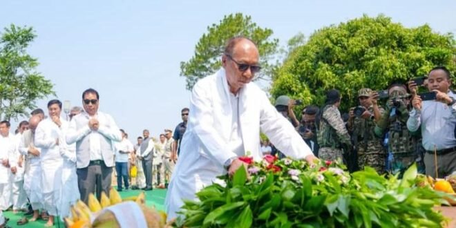 Imphal,April 23, : : The “Khongjom Day” was solemnly observed today at the Khongjom War Memorial, Khebaching, Khongjom in Thoubal District, paying rich tributes to the martyrs who sacrificed their precious lives for the motherland, Manipur in the Battle of Anglo Manipur War (1891).
